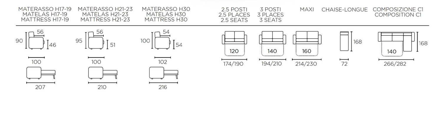 L.210 P.100 H.90 Cm
